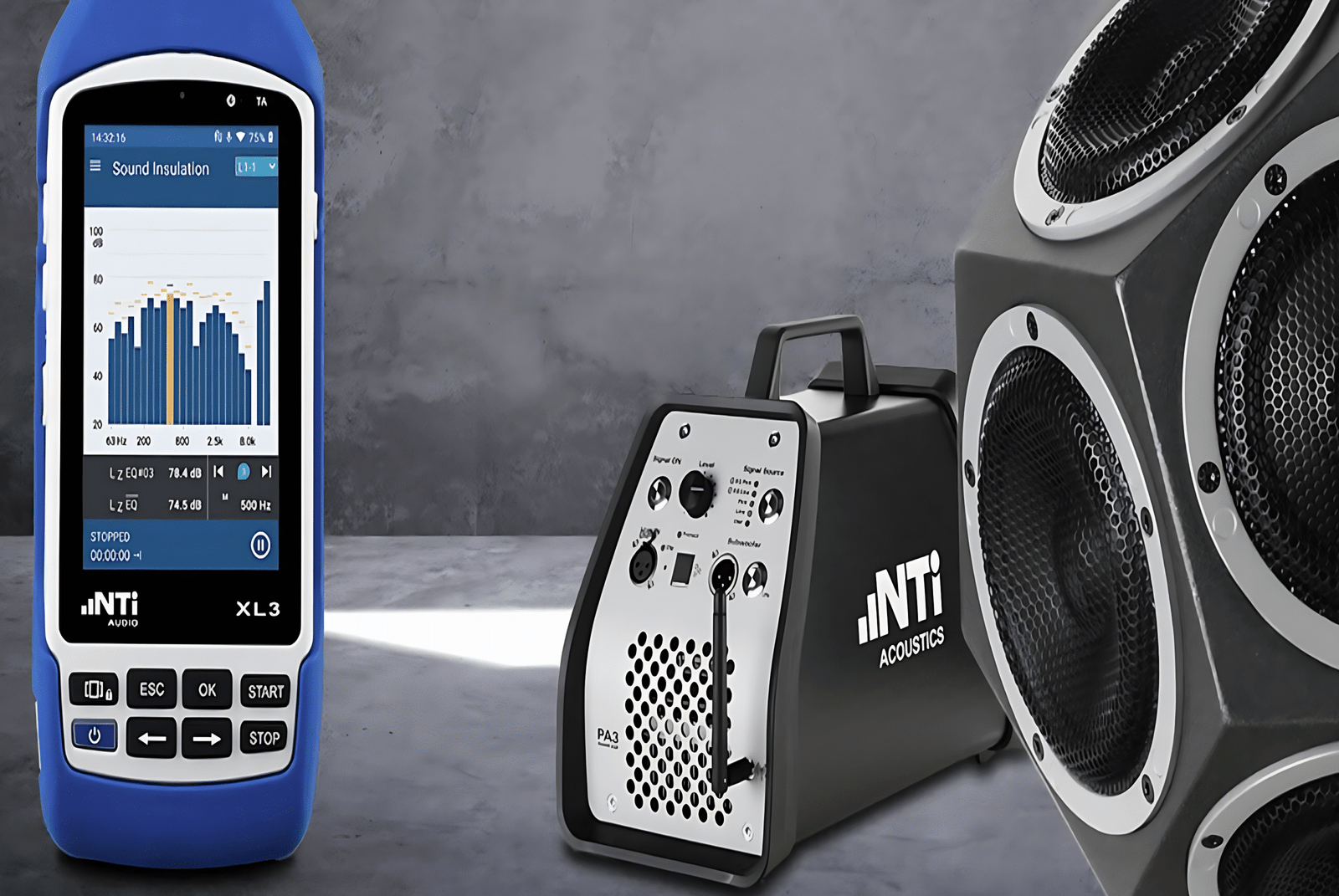 - Versatile Sound Sources: Omnidirectional and directional dodecahedral speakers for various testing methods; tapping machines simulate footfall and impulsive noise sources for reverberation measures.
