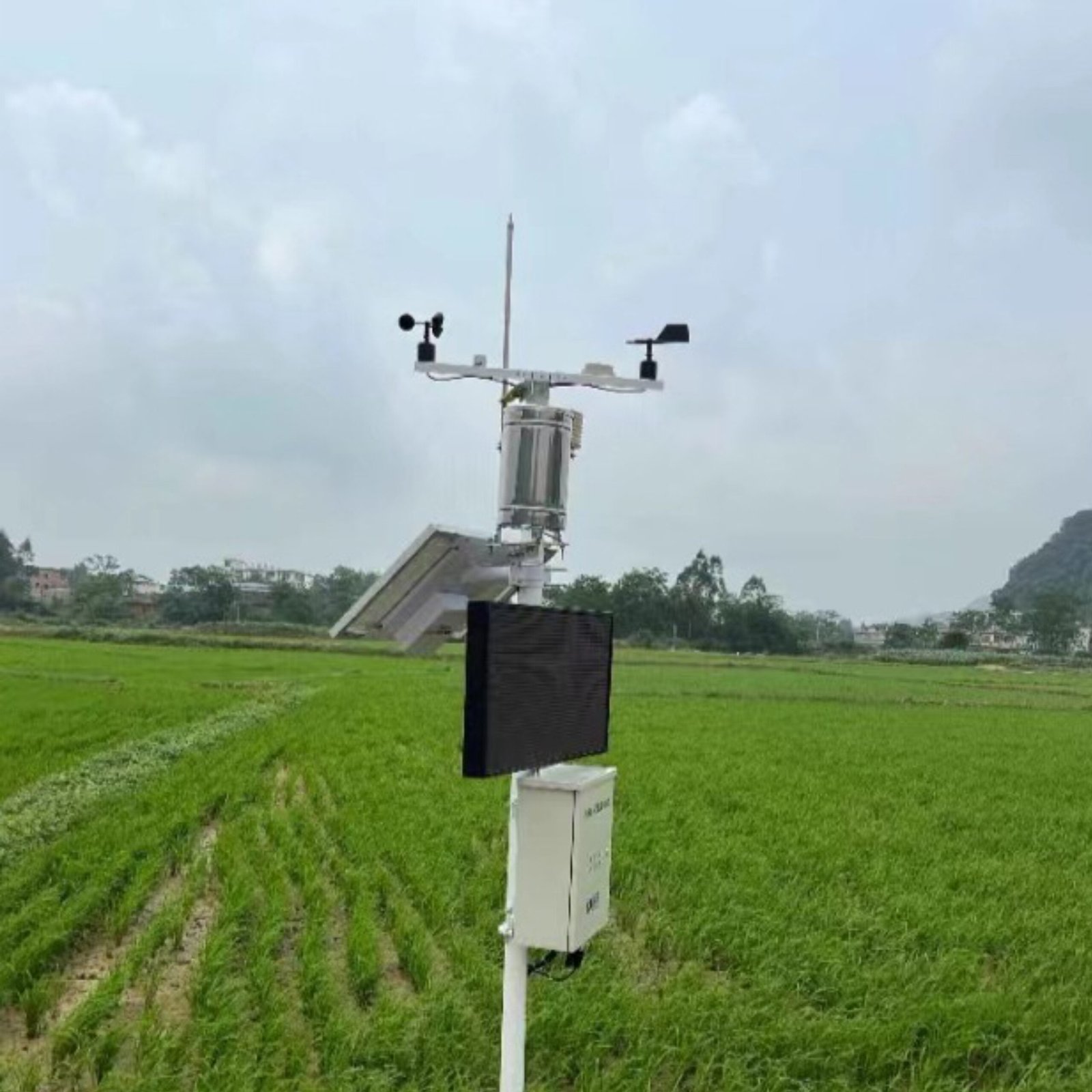 Collects real-time data on temperature, humidity, wind, and rainfall.
